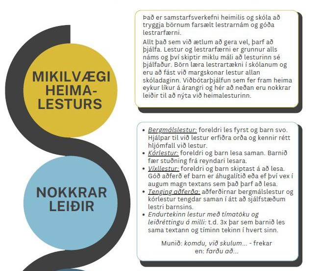Mikil áhersla er lögð á að gott upplýsingastreymi sé á milli heimila og skóla. Við leggjum sérstaka áherslu á að foreldrar komi á árlegar haustkynningar, kynningar á námsverkefnum barnanna, fyrirlestra og námskeið sem skólinn bíður upp á og sýni þannig námi og velferð barnanna áhuga með þátttöku sinni.