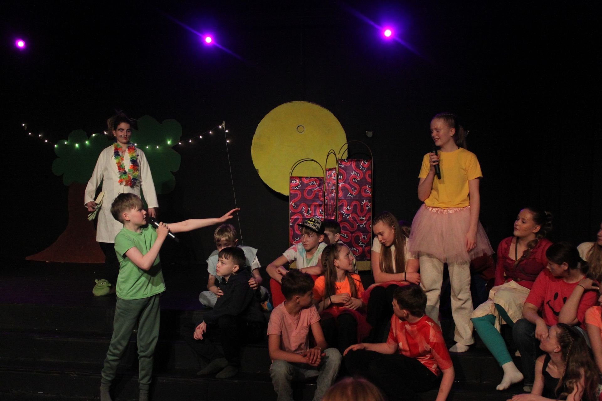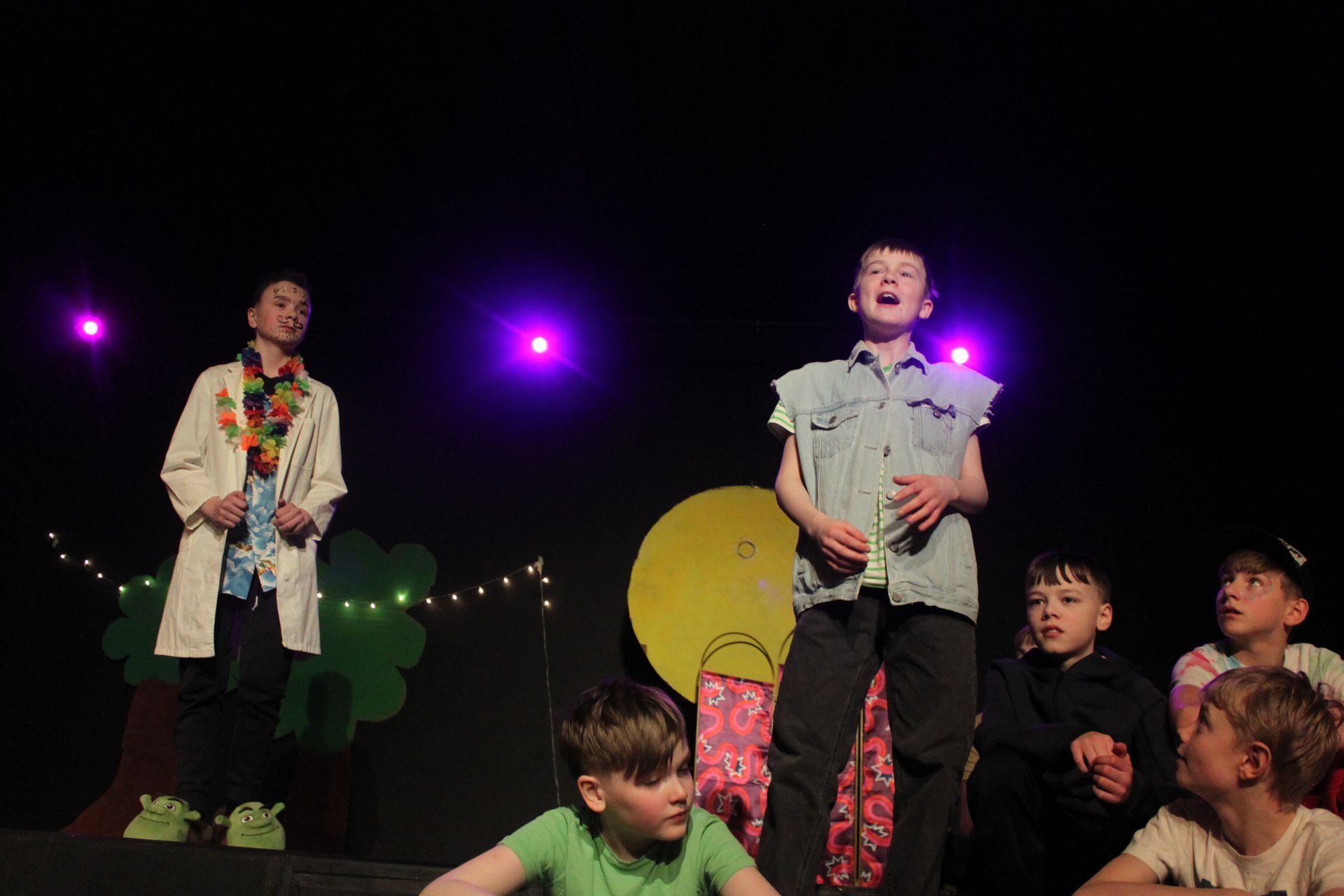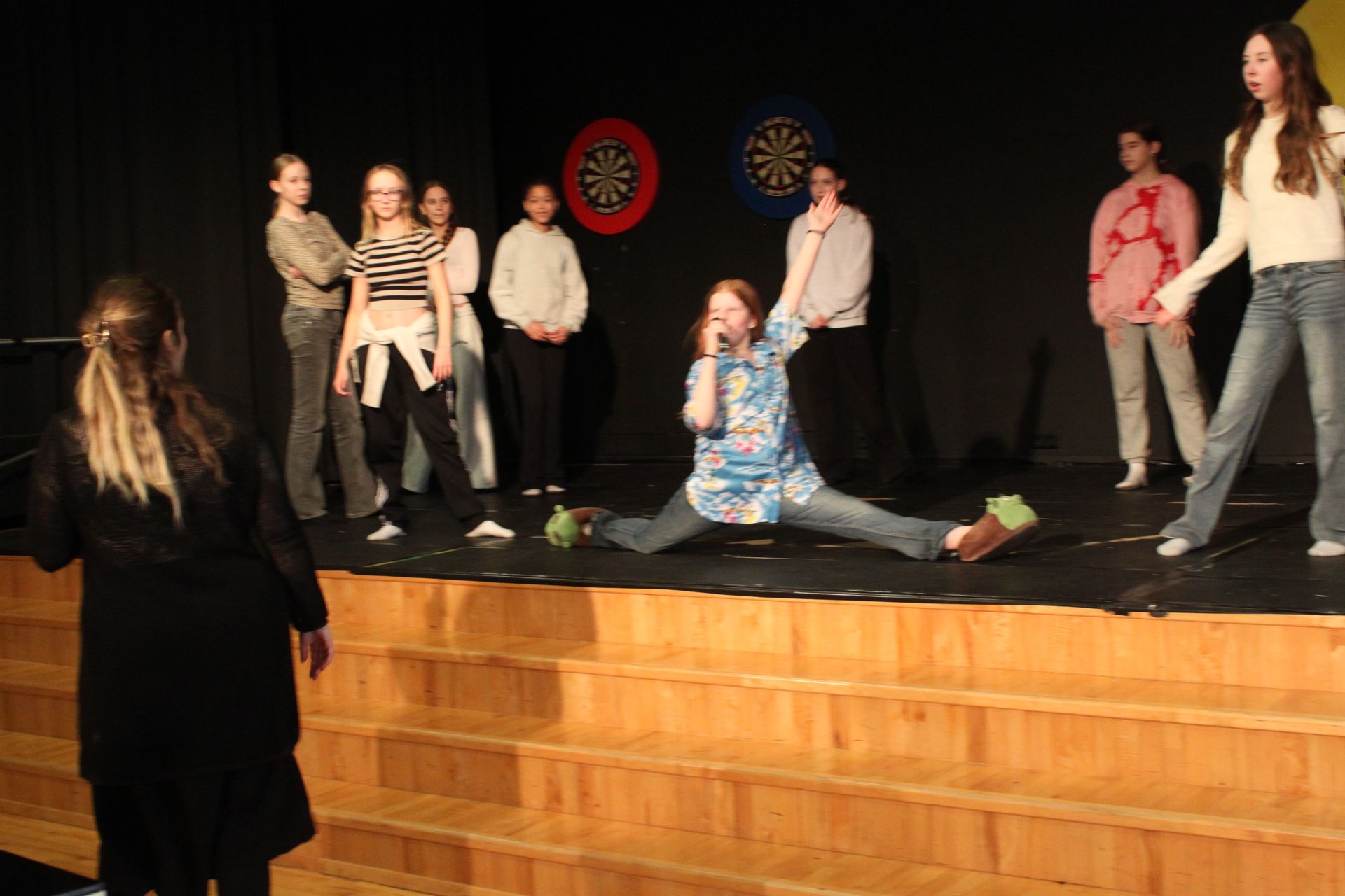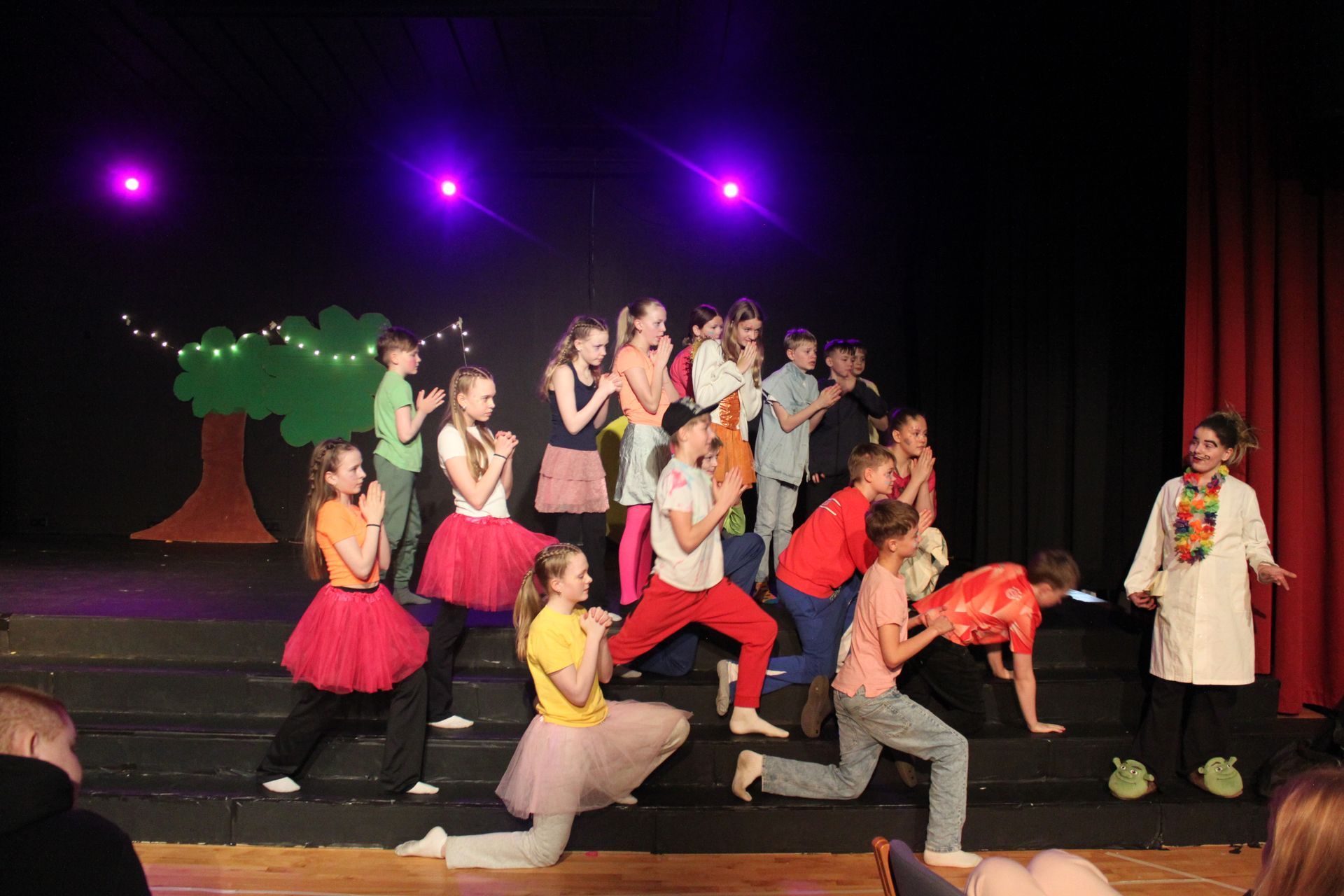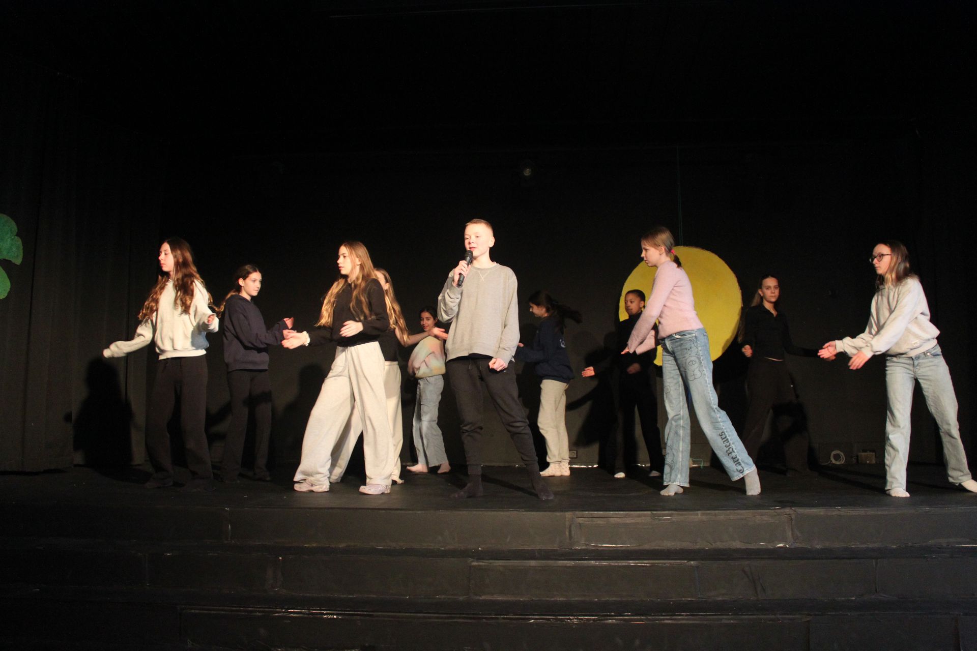 7.bekkur í Grundaskóla æfir nú leikritið Bláa hnöttinn.