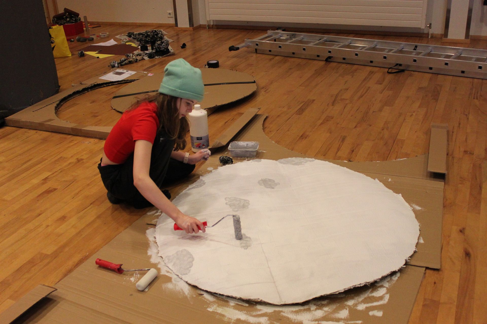 Það einstaka við þessa uppsetningu er að leikmynd er alfarið í höndum nemenda.