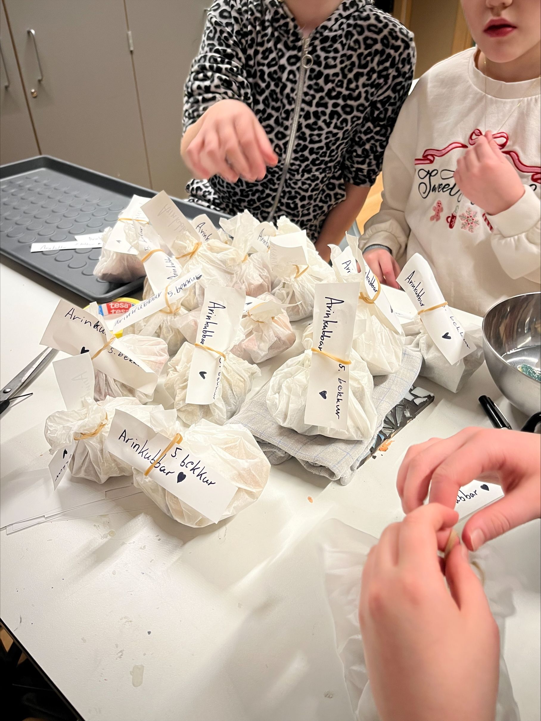 Það er alltaf nóg um að vera hjá okkur í skógræktinni í útináminu. Í þessari ferð vorum við að vinna með tugina í stærðfræðinni. Bjuggum til píluspjald og reyndum að fá sem flest stig. Einning vorum við að leika okkur með garn og trjágreinar. Börnin njóta sín vel í þessari náttúruparadís sem skógræktin okkar er. Í nóvember var markaðurinn "Breytum krónum í gull" Föstudaginn 12.desember lögðum við af stað í óvissuferð með kakó, smákökur eða sparinesti. í myrkrinu. Nemendur voru vel útbúnir með höfuðljós og vasaljós. Áningastaður okkar var fyrir utan Stúkuhúsið við Byggðasafnið. Þar settumst við niður og fengum okkur sparinesti og hlustuðum á jólasögu og áttum notalega stund í köldu vetrarveðri. Við óskum ykkar gleðilegra jóla og njótið samverunnar um hátíðarnar. Jólakveðja frá 2.bekk