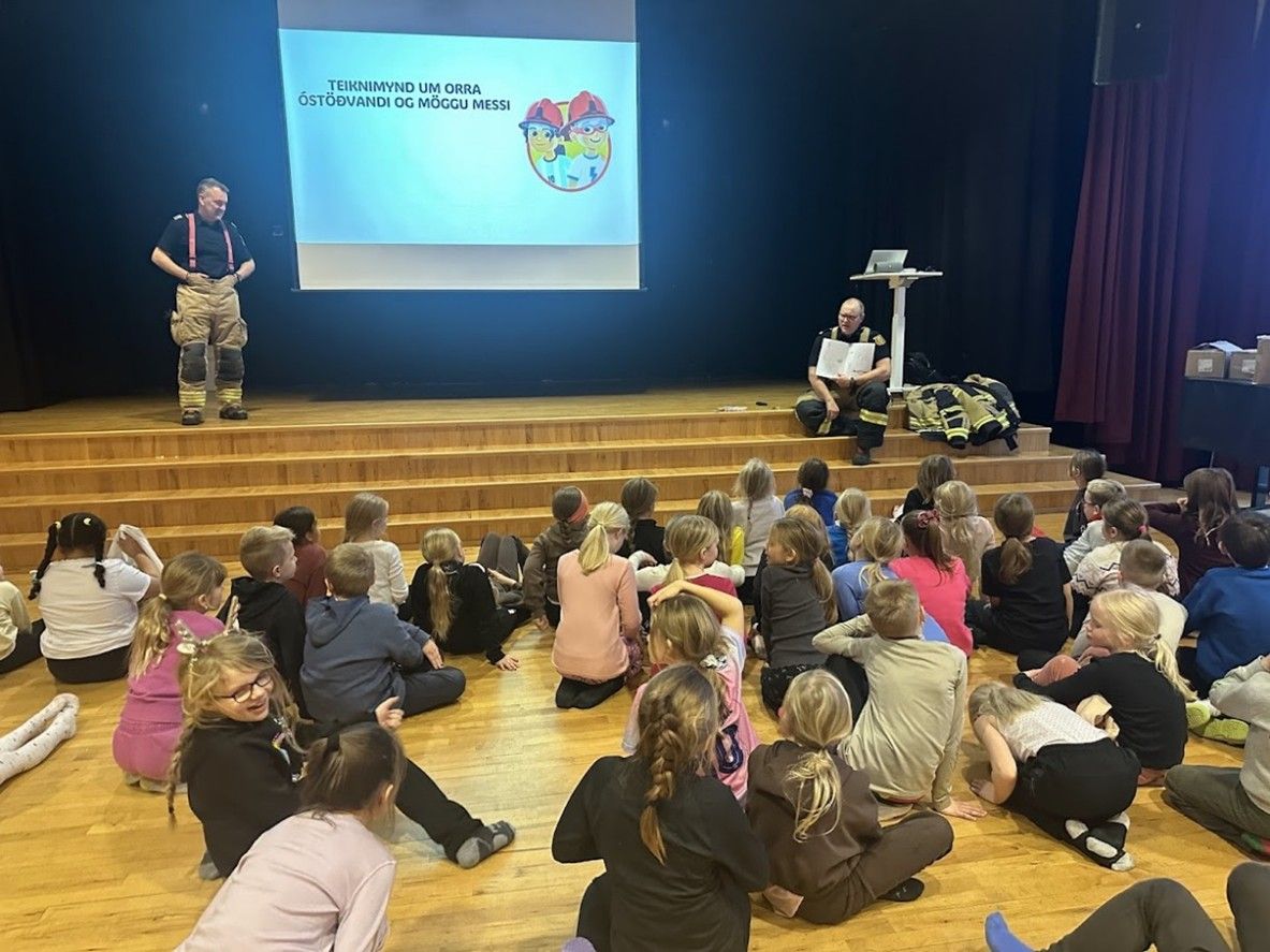 Nemendur fengu að gjöf bókina Ævintýri Orra og Möggu – Eldvarnir ásamt því að fá litarbók, buff og endurskinmerki. Við þökkum Slökkviliðinu fyrir þessar dásamlegu gjafir.