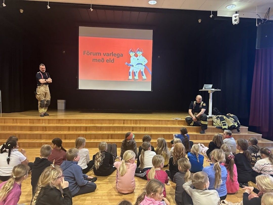 Í gær kom Slökkviliðið í heimsókn til okkar í 3.bekk á degi reykskynjarans. Farið var yfir mikilvægi þess að skoða reykskynjara á heimilinu 4 sinnum á ári og skipta um rafhlöðu 1.des ár hvert.