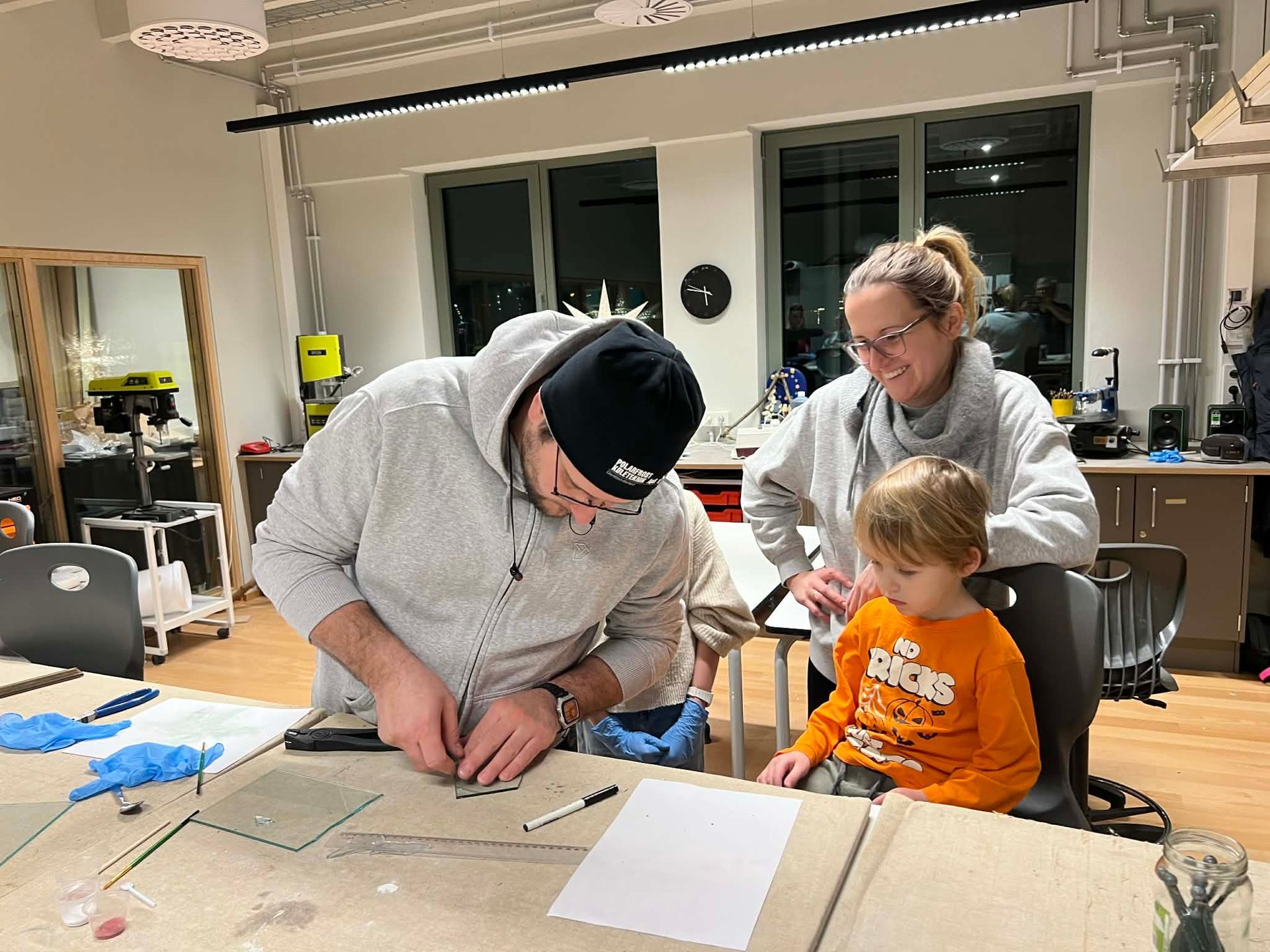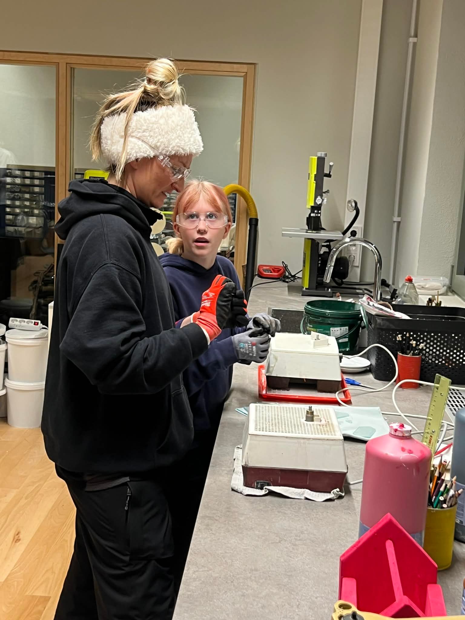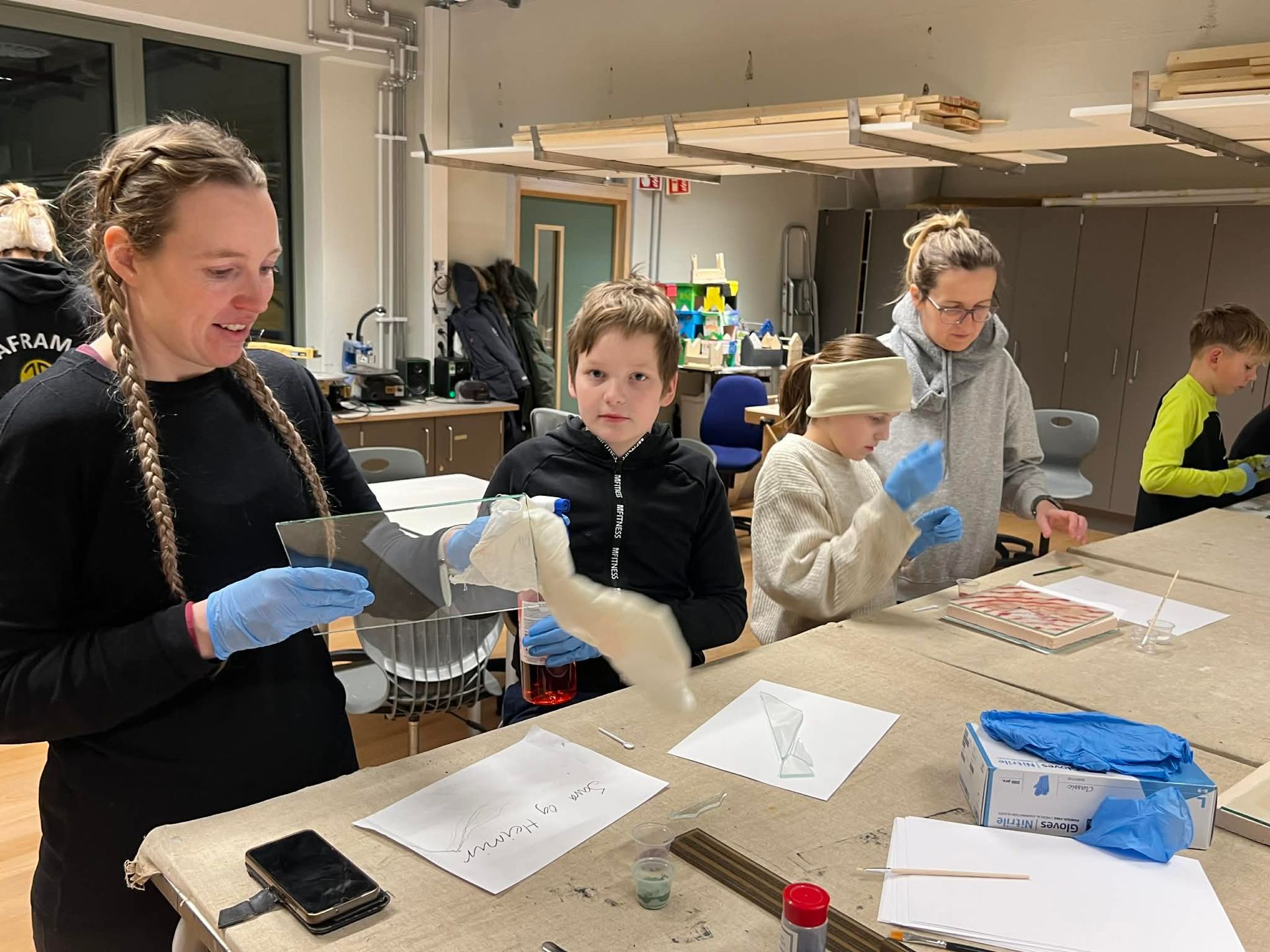 Námskeið þetta var í boði fyrir 5.-10.bekk. Þar komu saman nemendur og foreldrar og bjuggu til listmuni eftir eigin hönnun.