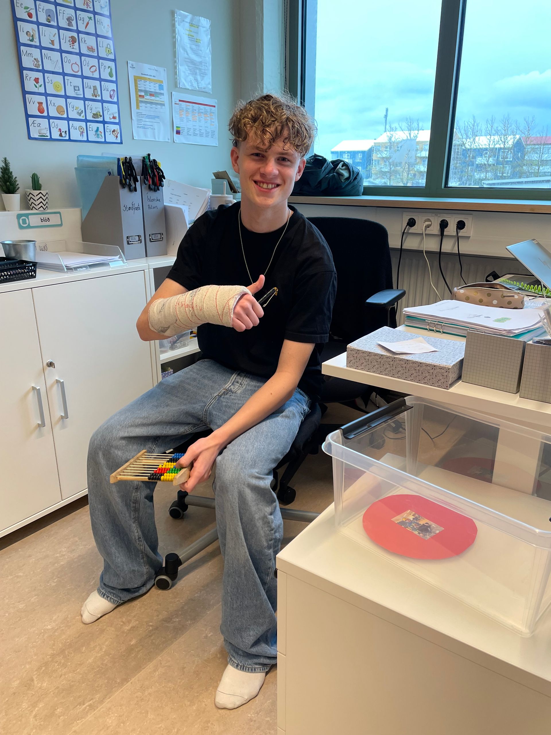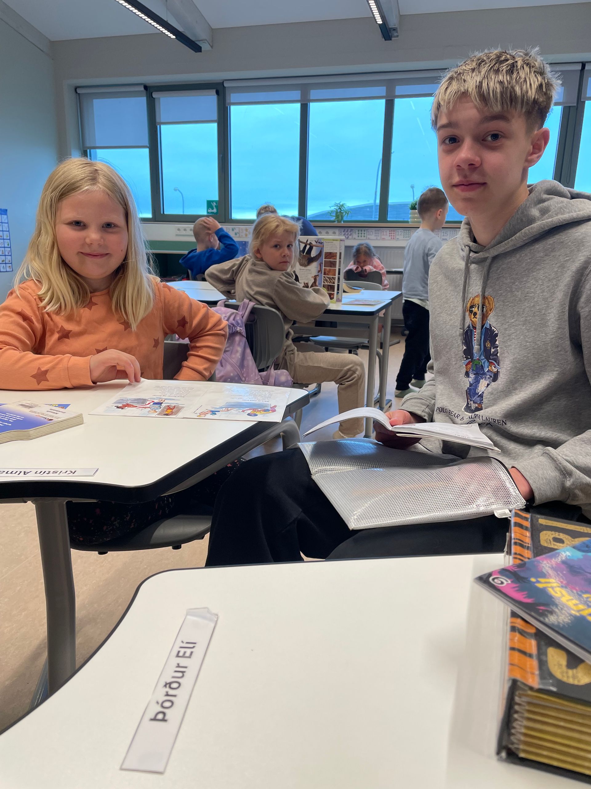 Þeir fengu að aðstoða umsjónarkennara bekkjanna m.a. með lestur, stærðfræði og fleira.