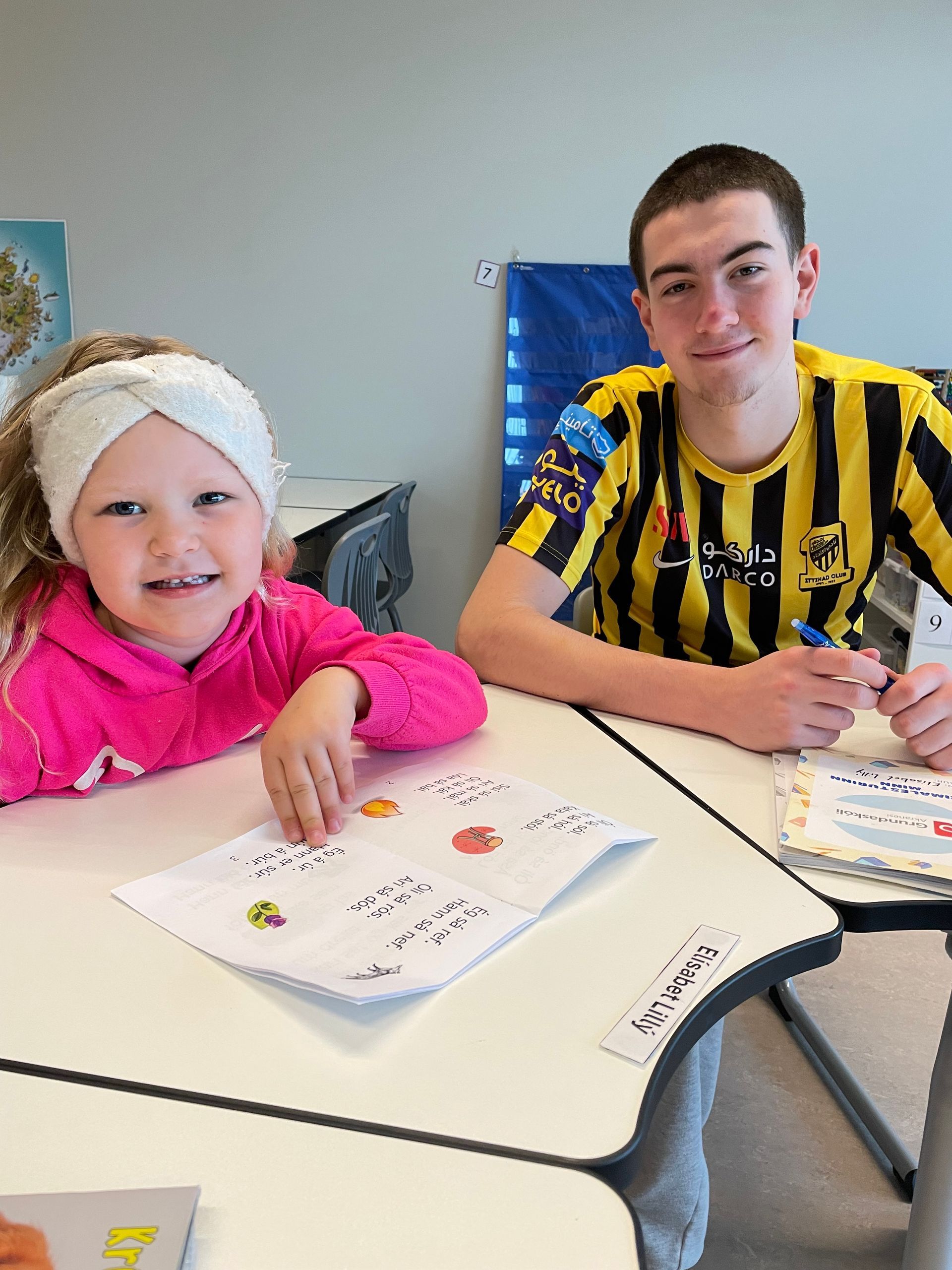 Þeir fengu að aðstoða umsjónarkennara bekkjanna m.a. með lestur, stærðfræði og fleira.