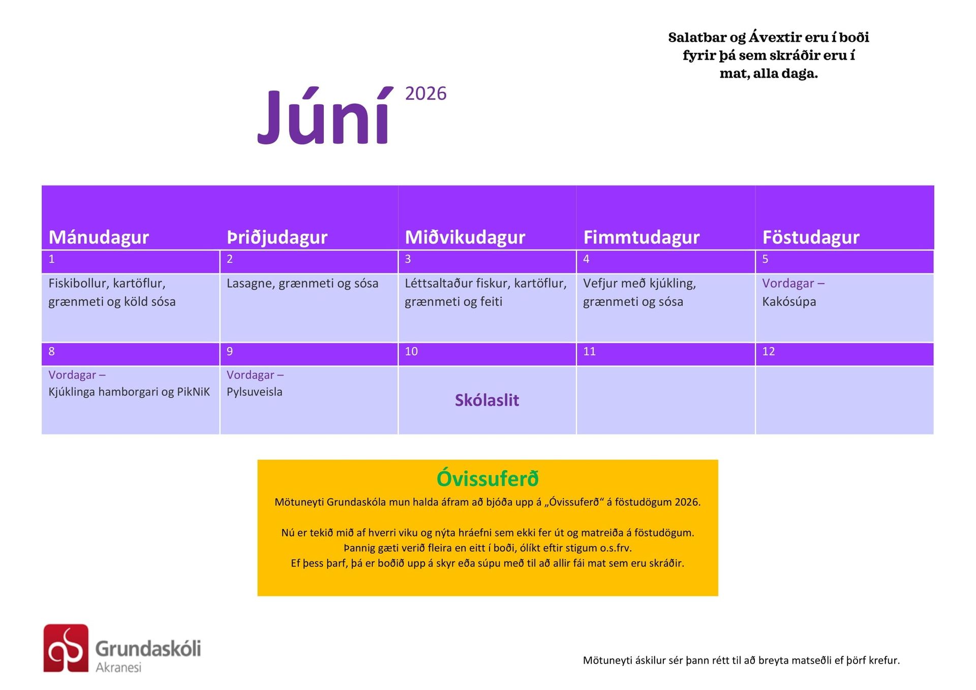 Breyting var gerð á matarskráningu nú í haust.