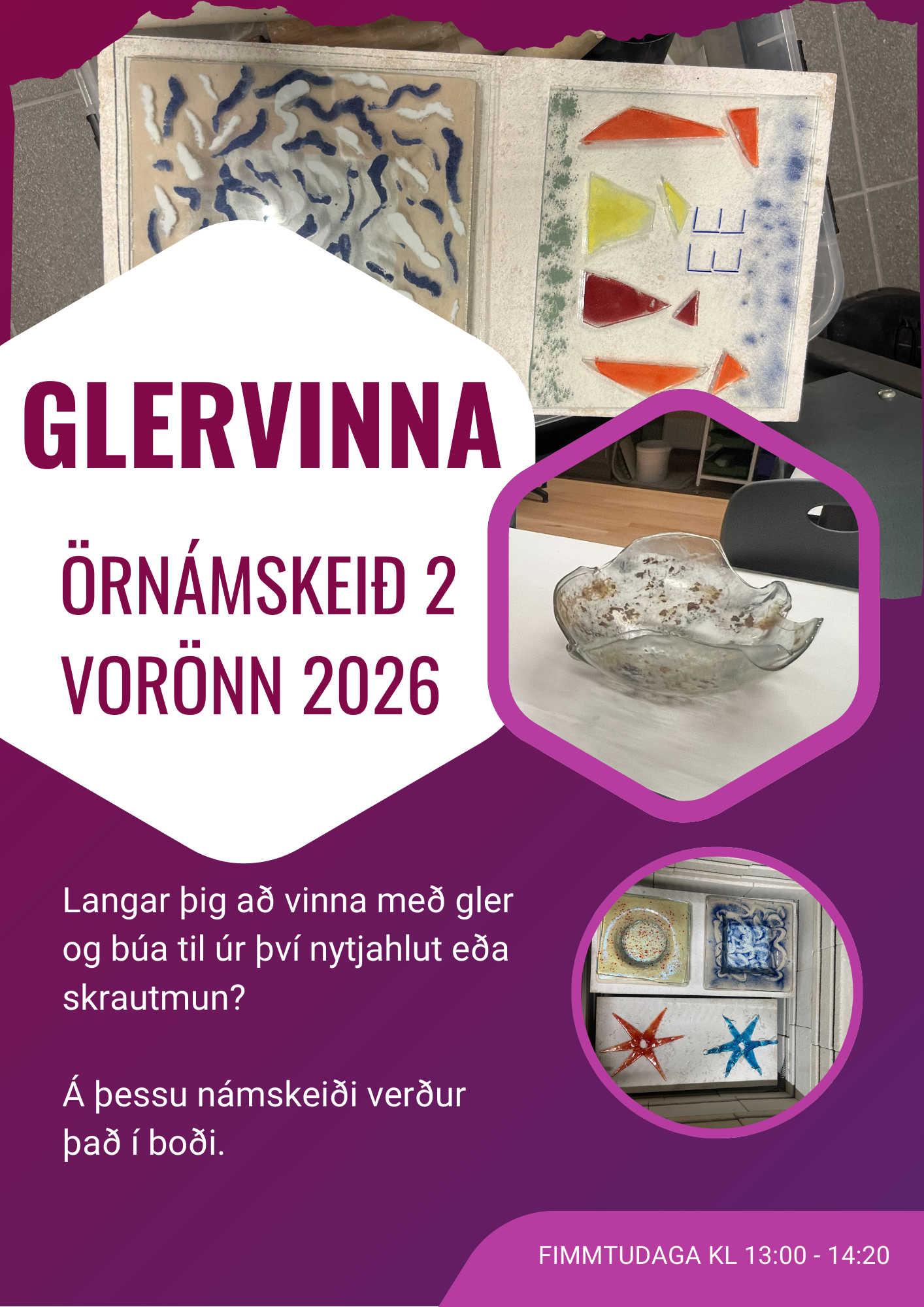 Með nýrri og afar vandaðri aðstöðu til list- og verkgreinakennslu í Grundaskóla hefur fjölbreytni í kennsluaðferðum aukist til mikilla muna. Meðfylgjandi myndir voru teknar í smiðjunni fimmtudaginn 27.nóvember en þá var í gangi örnámskeið sem er fyrir 8-10.bekk en í þessum eina tíma var verið að vinna með ólík viðfangsefni, nægir þar að nefna gler, málm og dúkristu og fleira. Annað er ekki að sjá en að nemendum líki vel þessi fjölbreytni í verkefnavali.