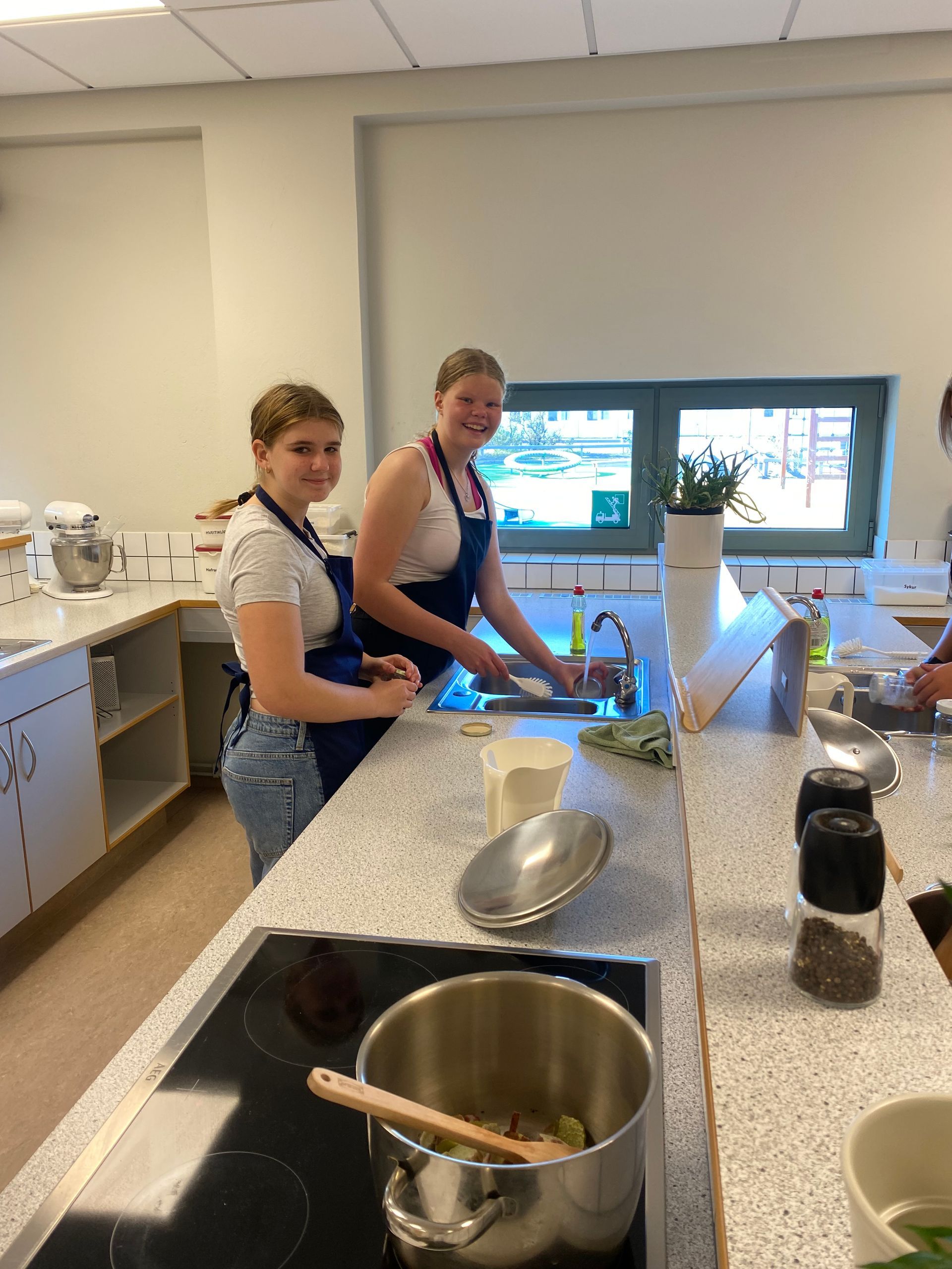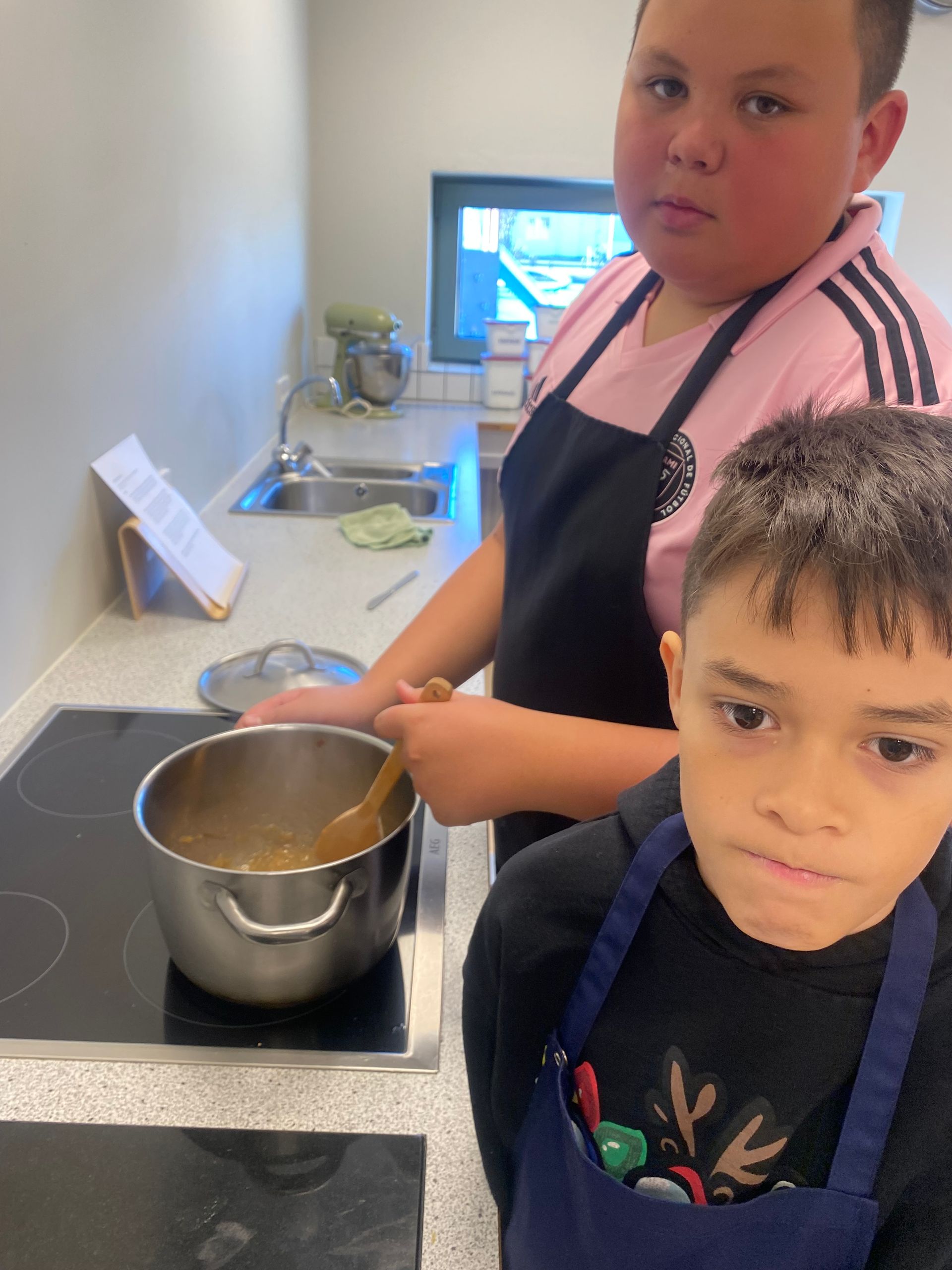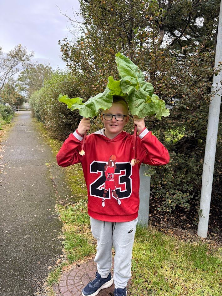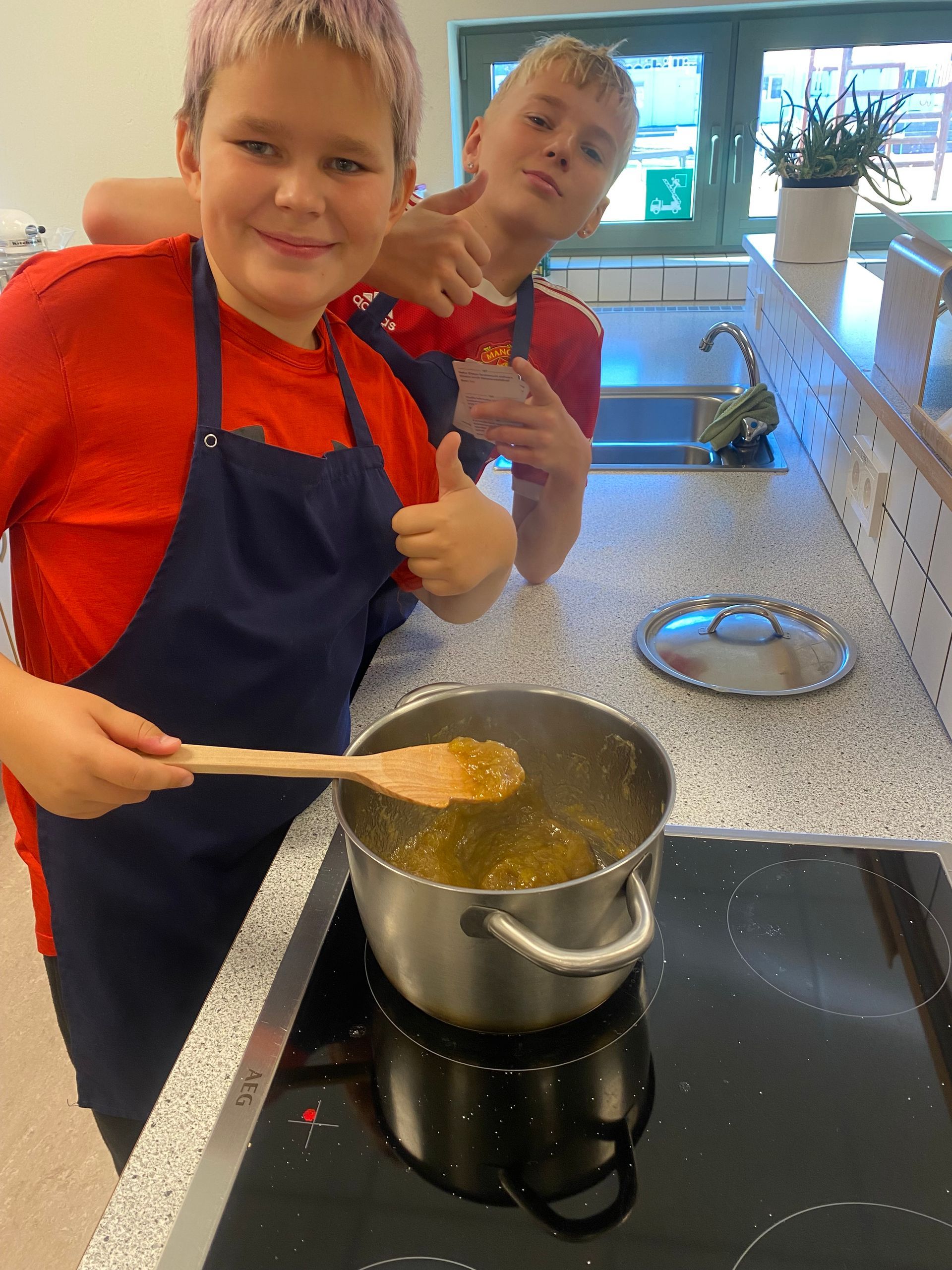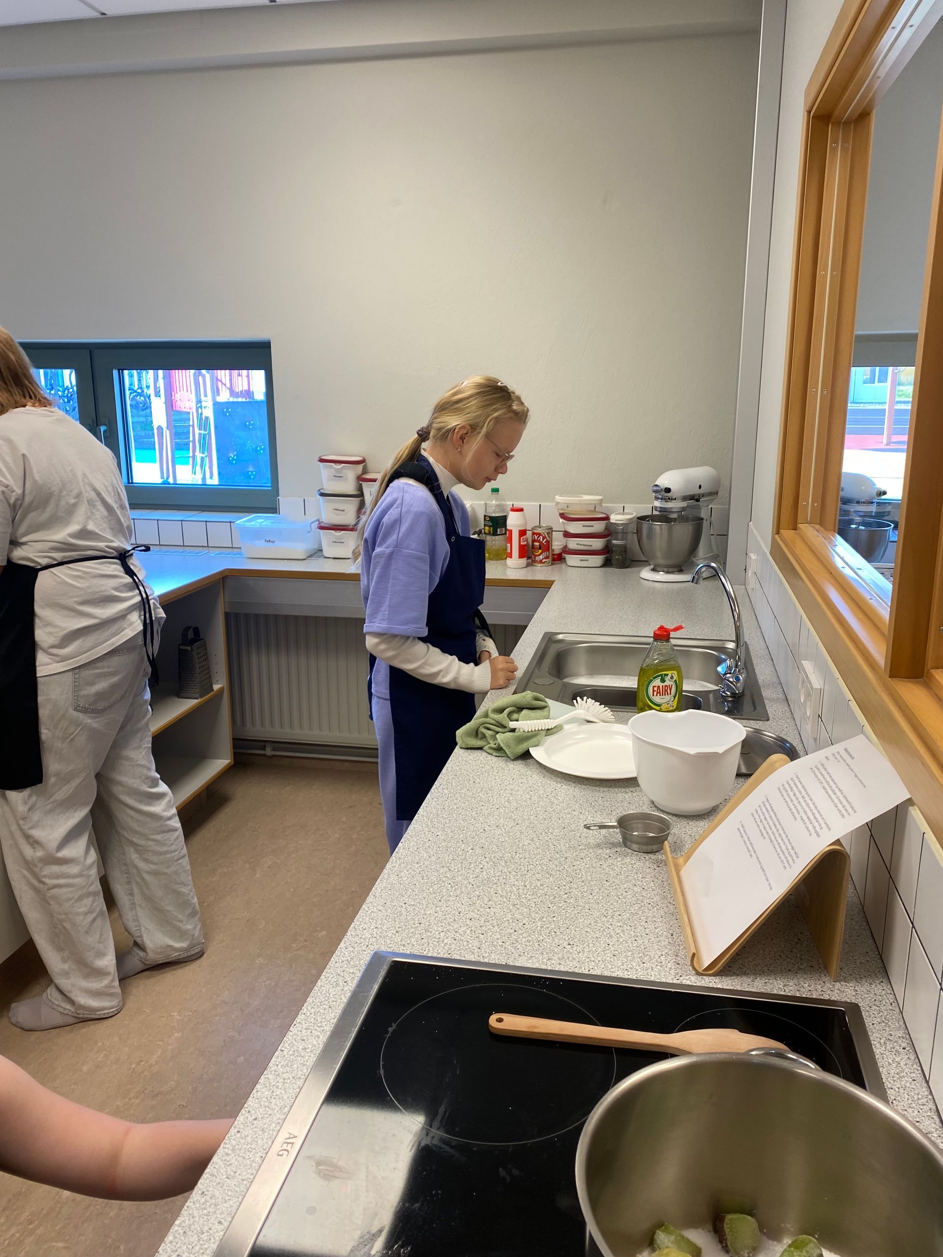 Í náttúrufræðitíma fóru nemendur út og tíndu ferskan rabarbara í nærumhverfinu. Í framhaldinu nýttu þau afraksturinn í heimilisfræðistofunni þar sem þau elduðu ljúffenga rabarbarasultu og bökuðu girnilega rúllutertu.