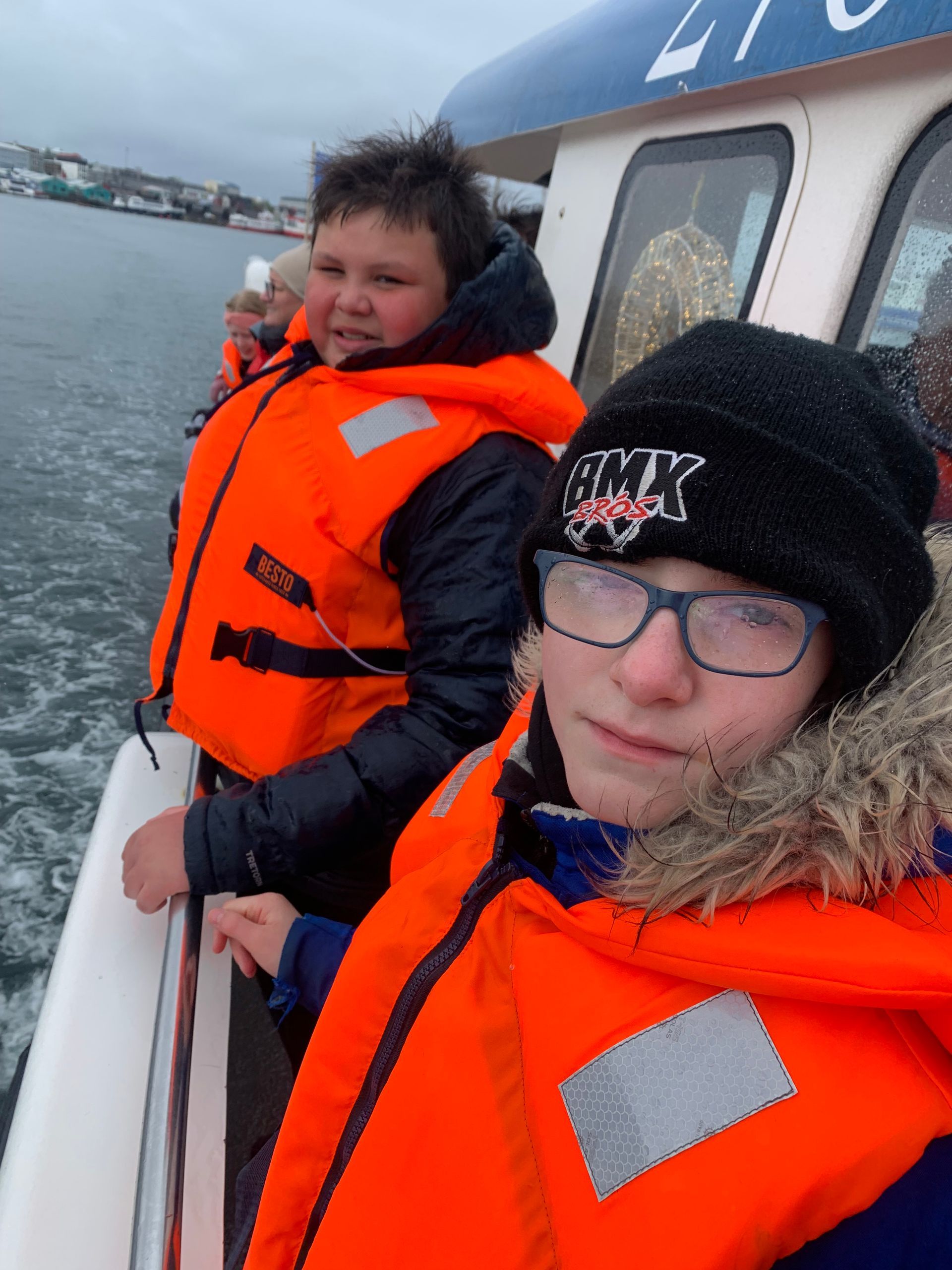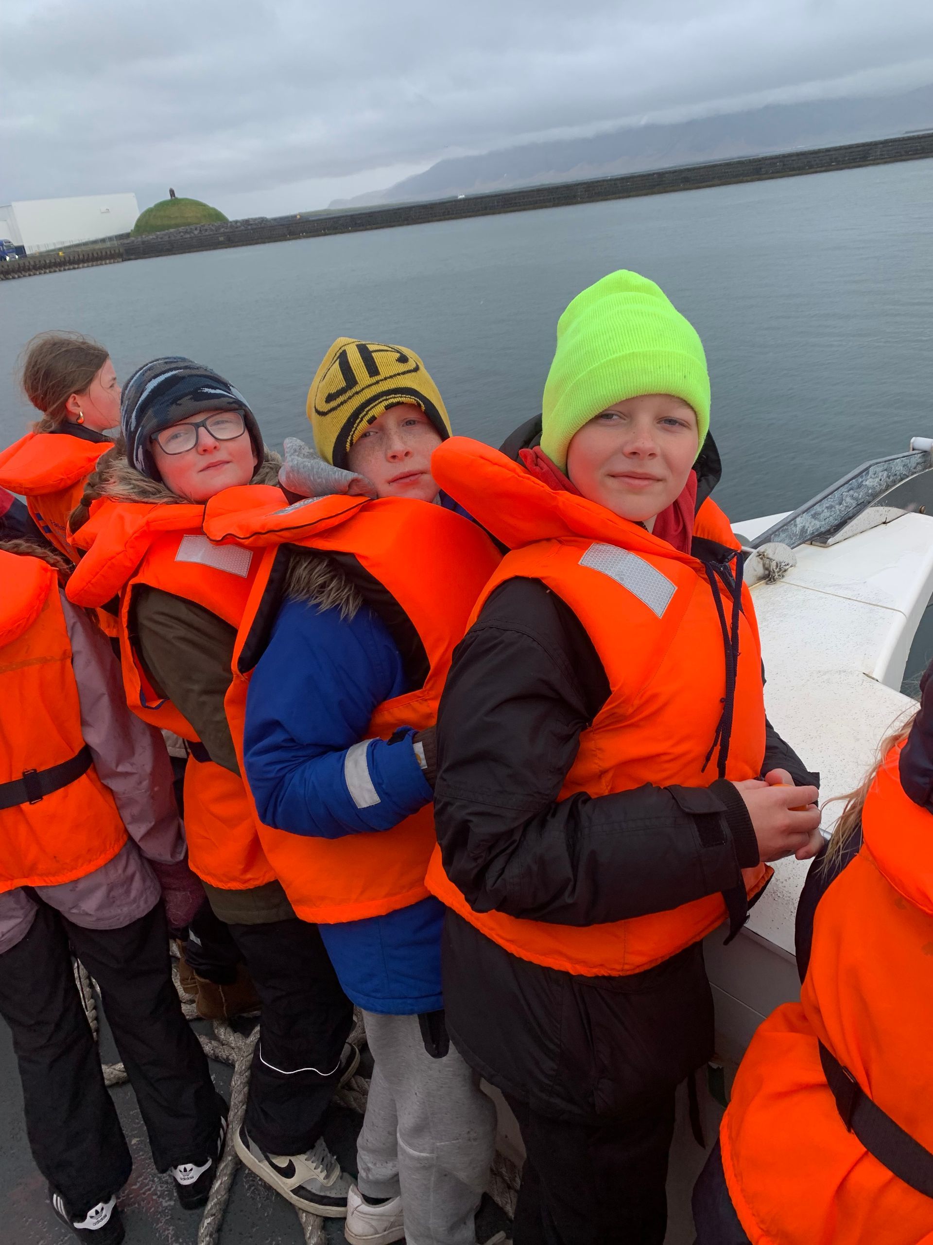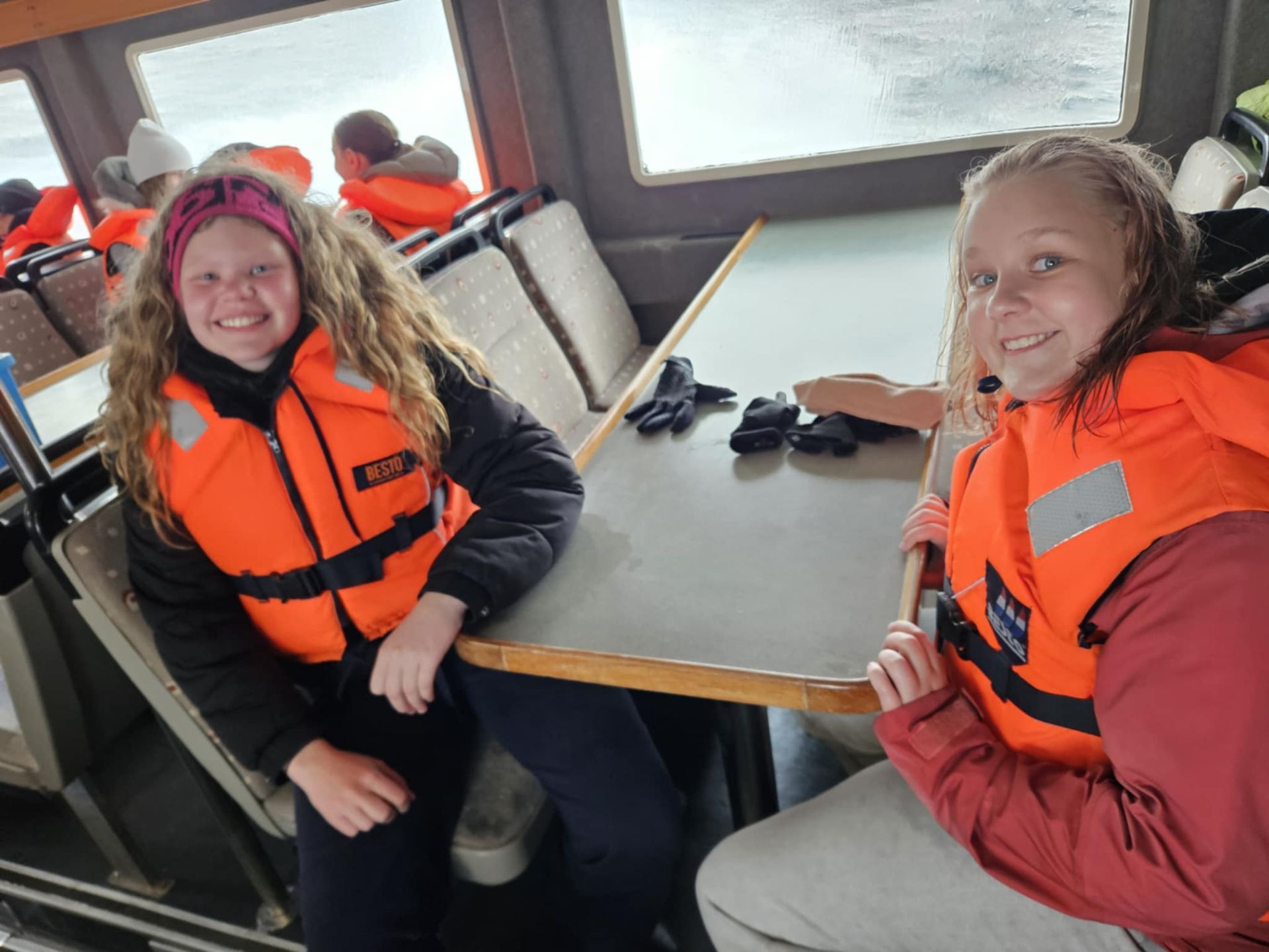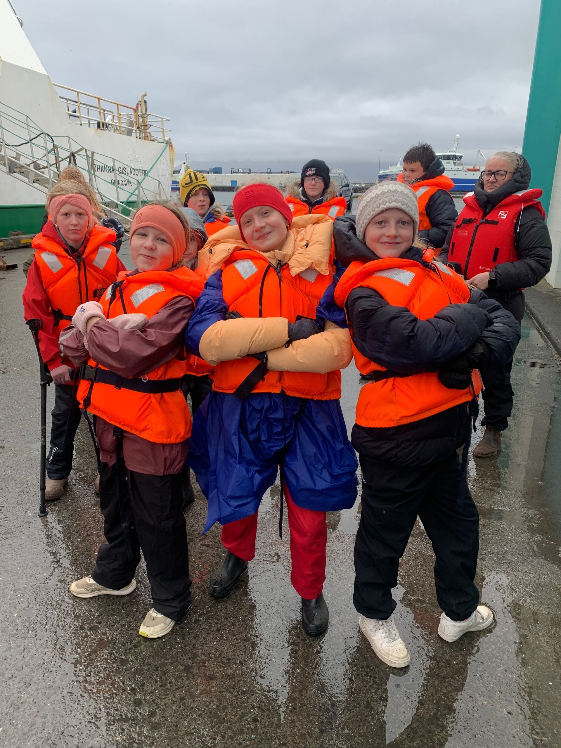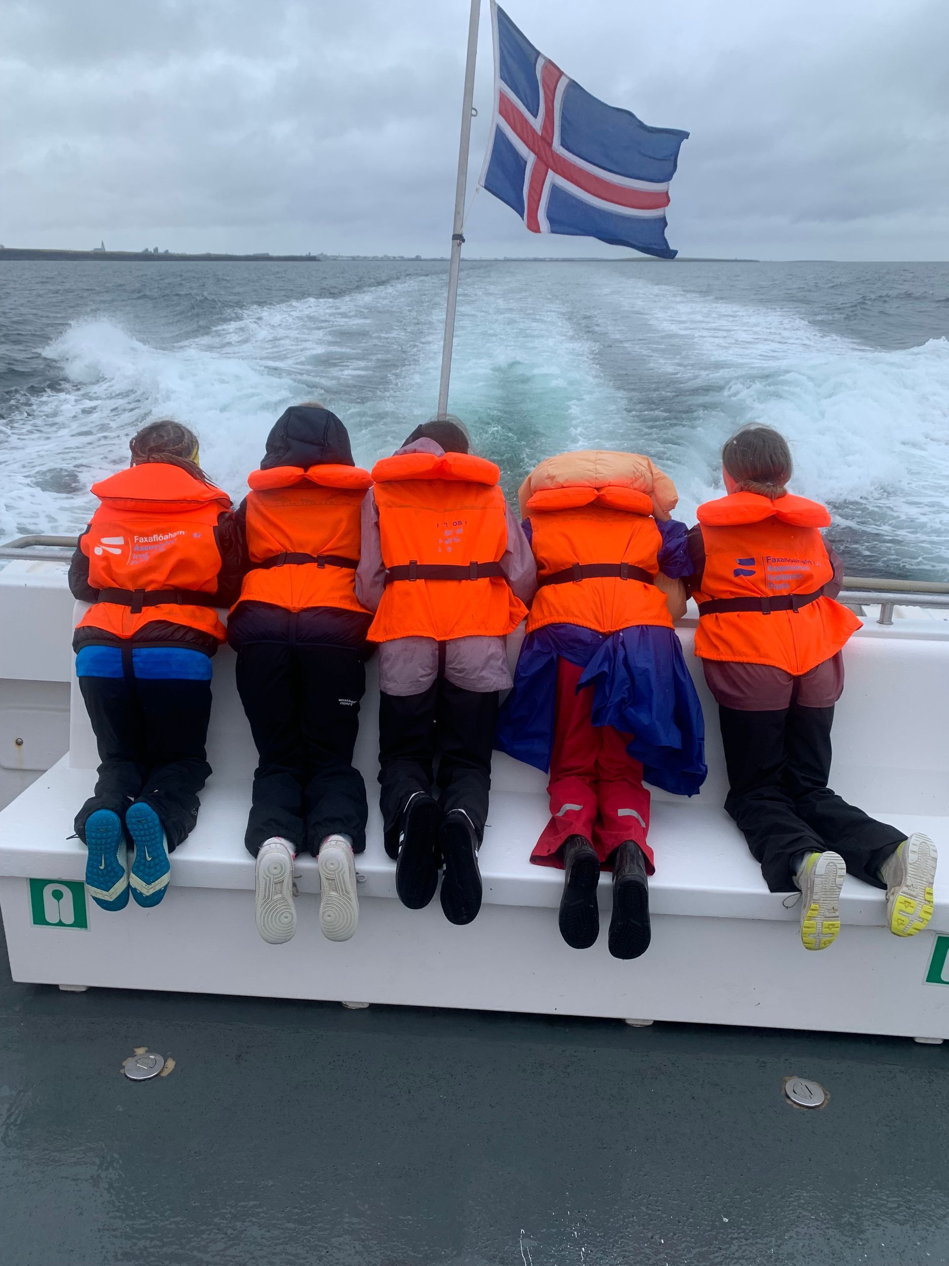 Ferðin var ansi blaut, enda bæði rigning og sjór sem skvettist upp í bátinn. Margir urðu bæði kaldir og votir, en það var samt stutt í brosið. Við töluðum um mikilvægi þess að vera jákvæð og finna það góða í öllum aðstæðum – sem krakkarnir gerðu svo sannarlega.