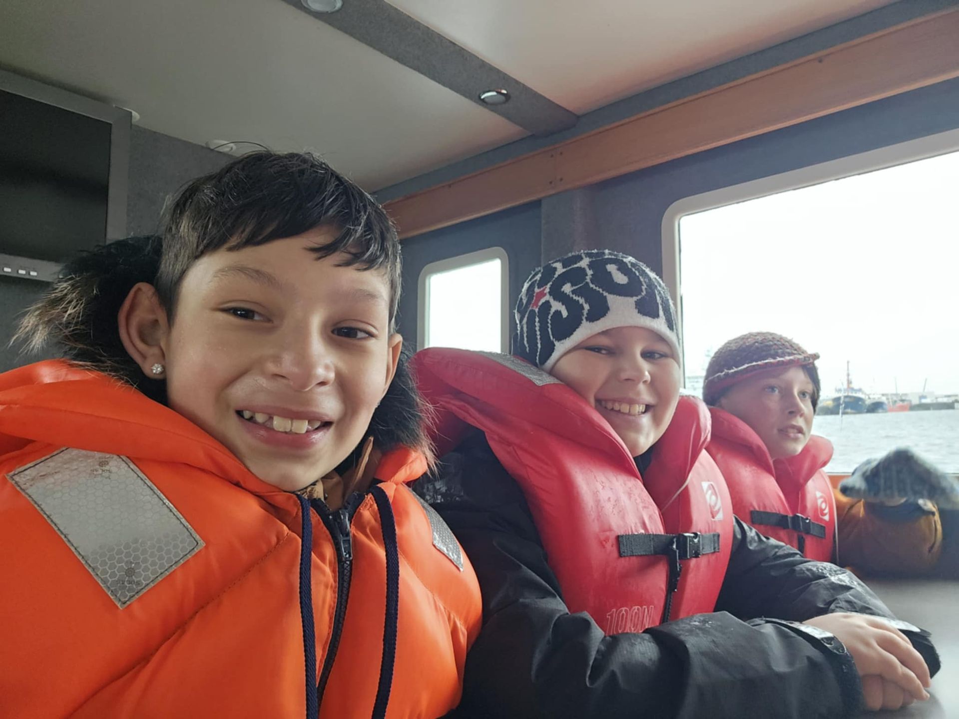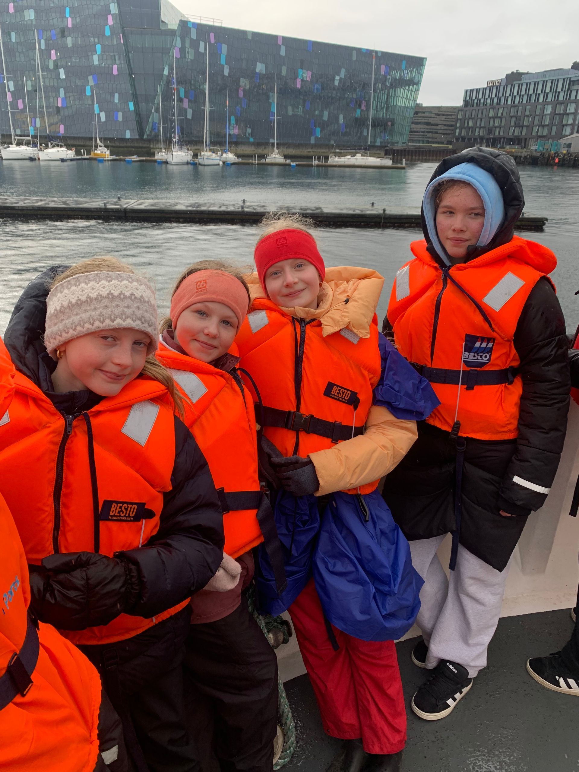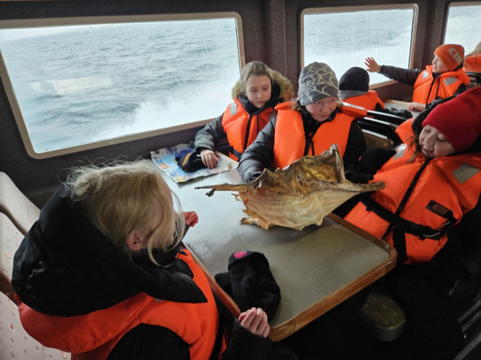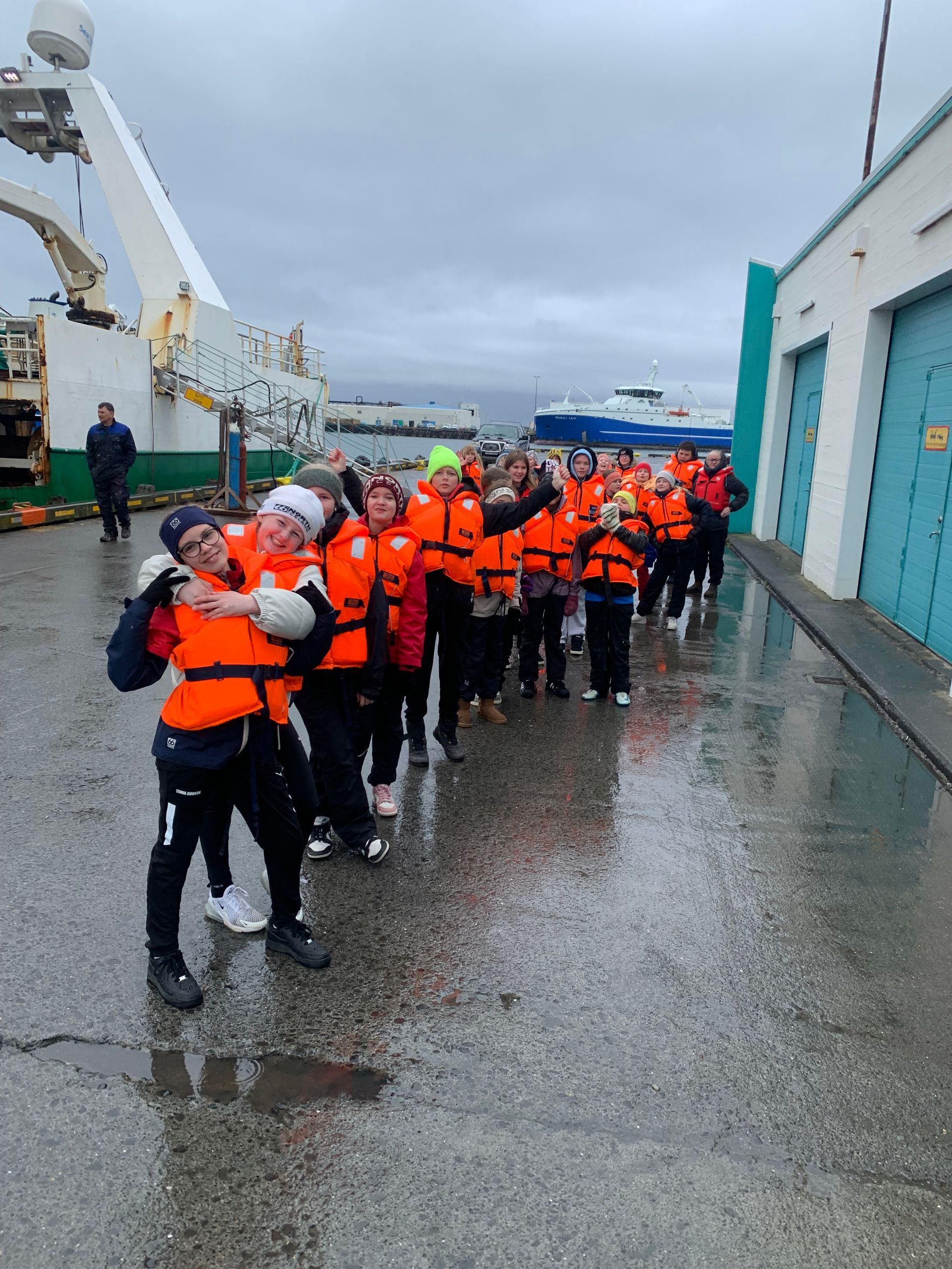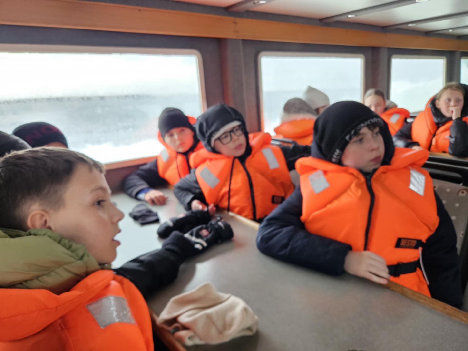 Ferðin var ansi blaut, enda bæði rigning og sjór sem skvettist upp í bátinn. Margir urðu bæði kaldir og votir, en það var samt stutt í brosið. Við töluðum um mikilvægi þess að vera jákvæð og finna það góða í öllum aðstæðum – sem krakkarnir gerðu svo sannarlega.