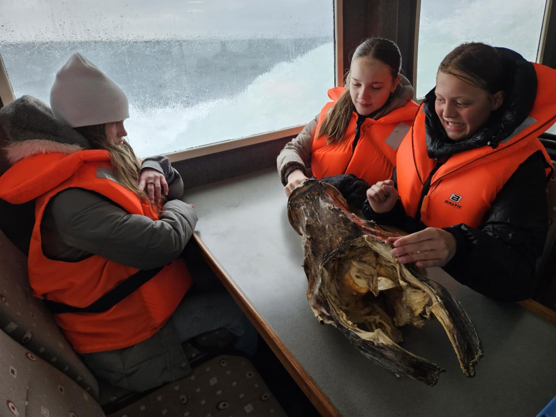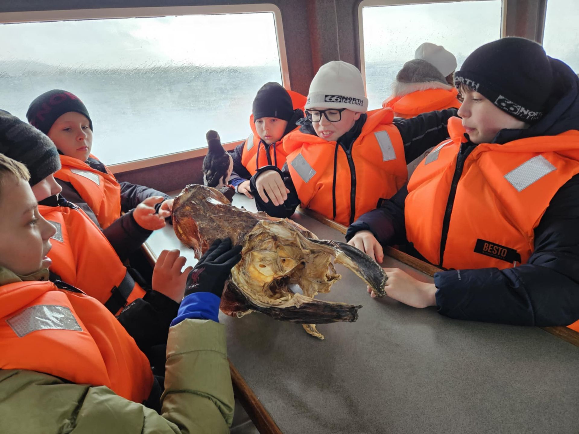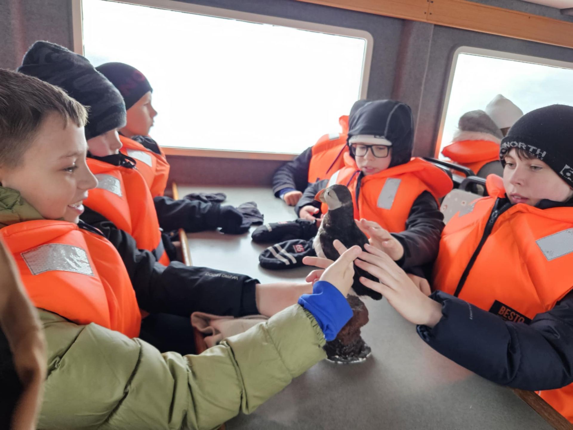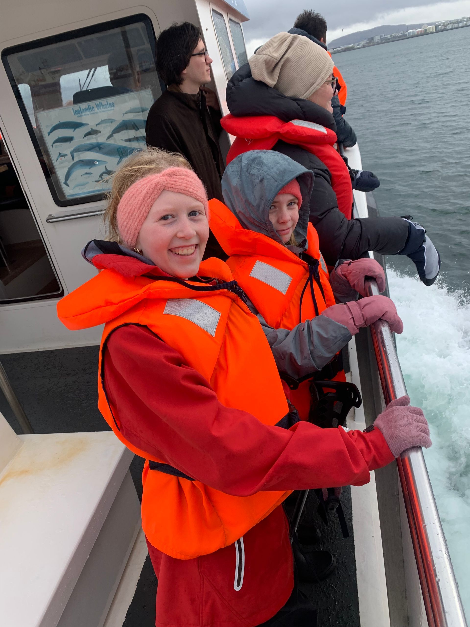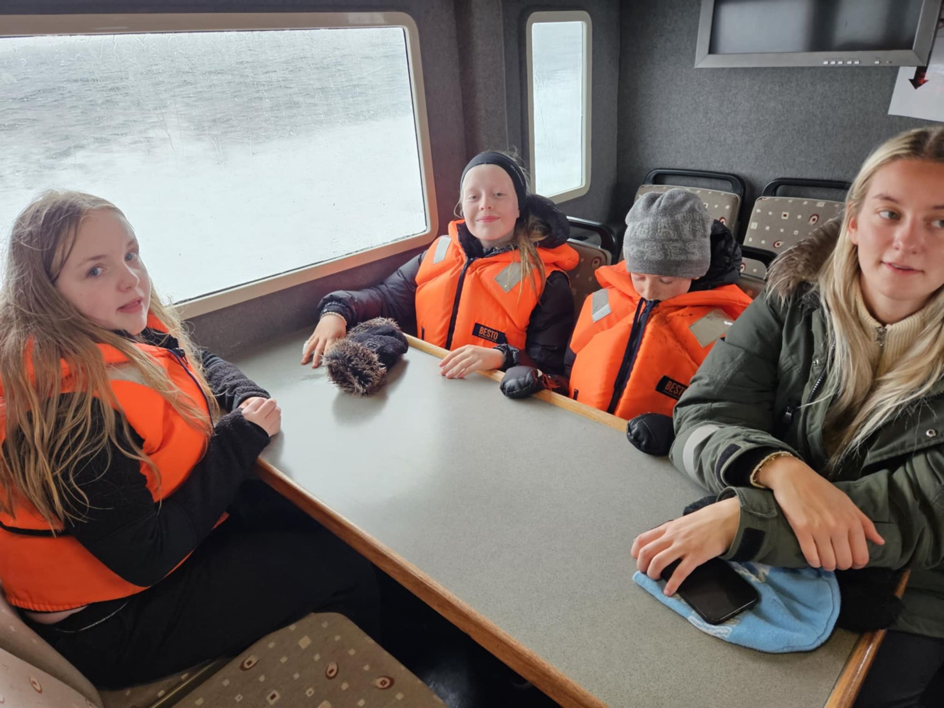 Ferðin var ansi blaut, enda bæði rigning og sjór sem skvettist upp í bátinn. Margir urðu bæði kaldir og votir, en það var samt stutt í brosið. Við töluðum um mikilvægi þess að vera jákvæð og finna það góða í öllum aðstæðum – sem krakkarnir gerðu svo sannarlega.