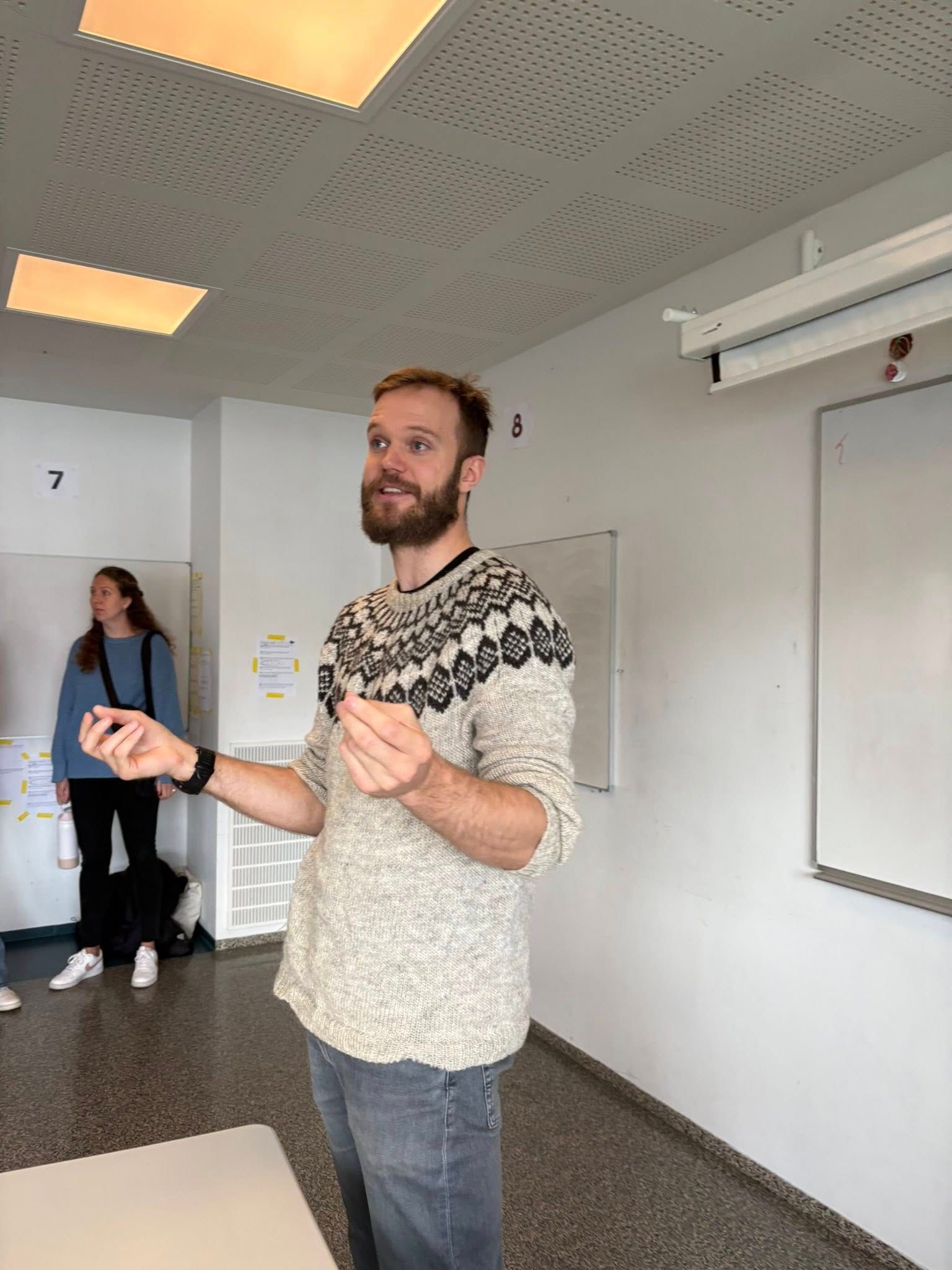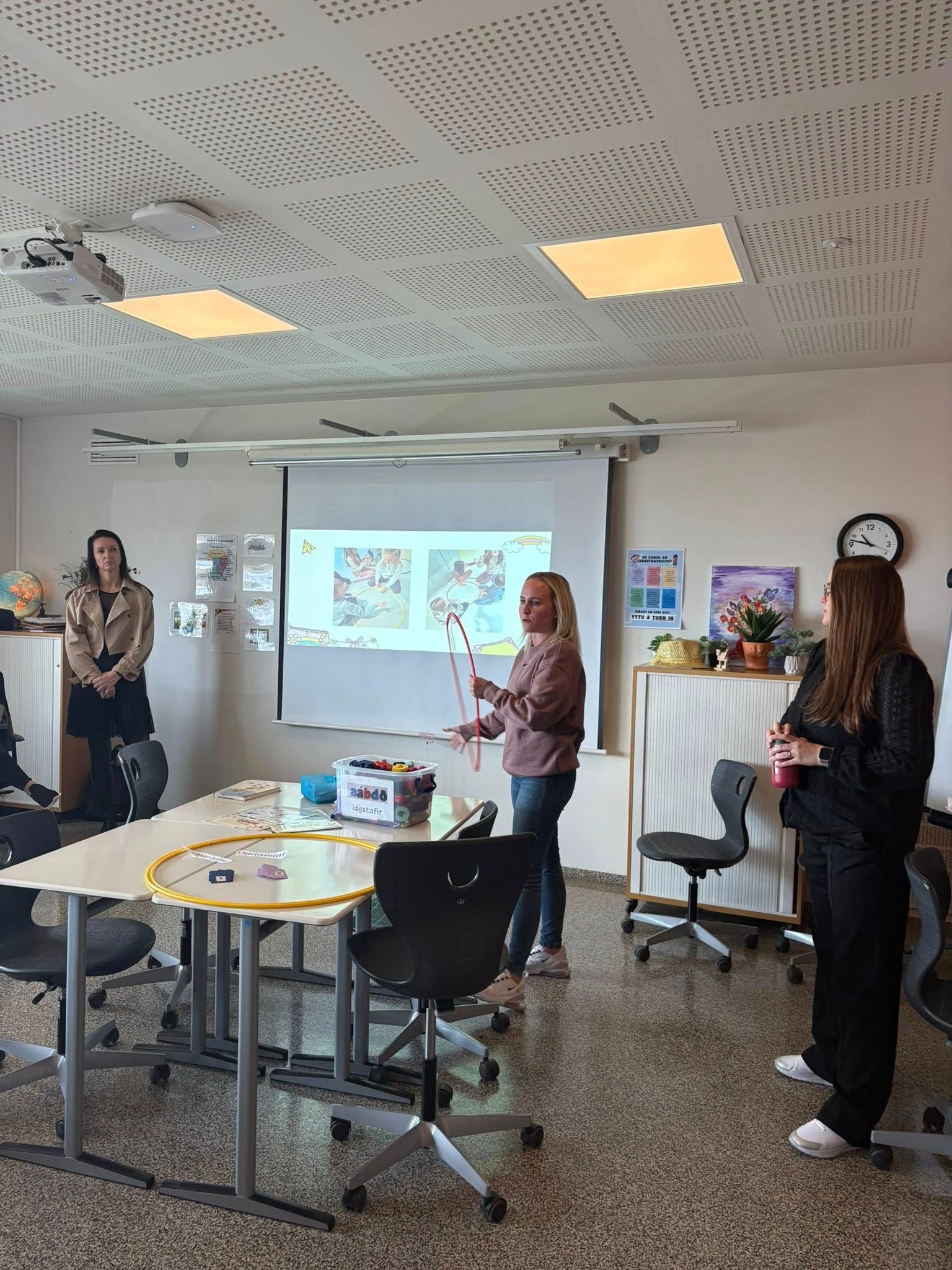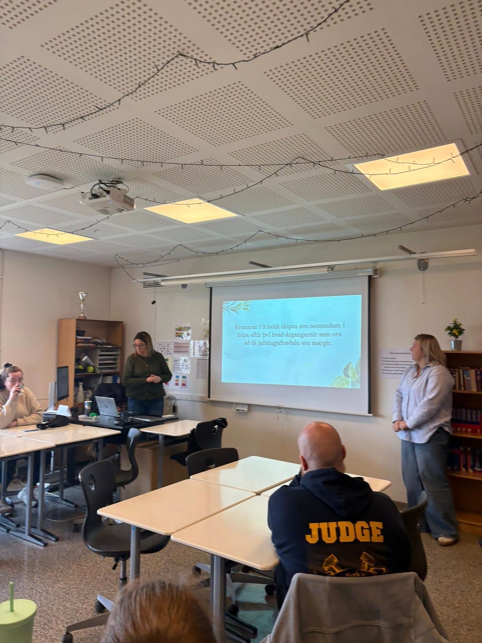 Stærðfræðin getur verið mörgum frekar flókin og ein af áskorunum kennarans er að leita lausna til að allir nemendur fái að njóta sín. Ein aðferð sem hópur í 7. bekk ákvað að láta reyna á kallast hugsandi skólastofa (Thinking Classroom). Aðferðin gengur út á að nemendur vinna saman í þriggja manna hópum að ákveðnum verkefnum. Hver hópur hefur aðeins eina tússtöflu og einn tússpenna. Þannig þurfa nemendur að vinna saman, útskýra hugsun sína og hjálpast að við að leysa dæmin. Markmiðið er að gera stærðfræðina virka, lifandi og samvinnumiðaða. Þannig læra nemendur að hugsa, ræða og útskýra í stað þess að fylgja hefðbundnum leiðbeiningum. Einn skrifar í einu, hinir tveir hugsa og leiðbeina og svo skiptast nemendur á hlutverkum. Þannig myndast samræða og dýpri skilningur. Eins og stundum vill verða að þá er ekki til nóg af tússtöflum í skólanum en það þarf ekki að vera vandamál. Við getum notað gluggana. Á meðan skammdegið er stutt þá er dimmt úti og bjart inni og gluggarnir tilvaldir í verkið. Nemendum finnst þessi aðferð skemmtileg og minnir frekar á leik heldur en „alvöru stærðfræði“. Samt unnu nemendur fjölda dæmi í deilingu og margföldun, ræddu lausna og komu með hugmyndir.