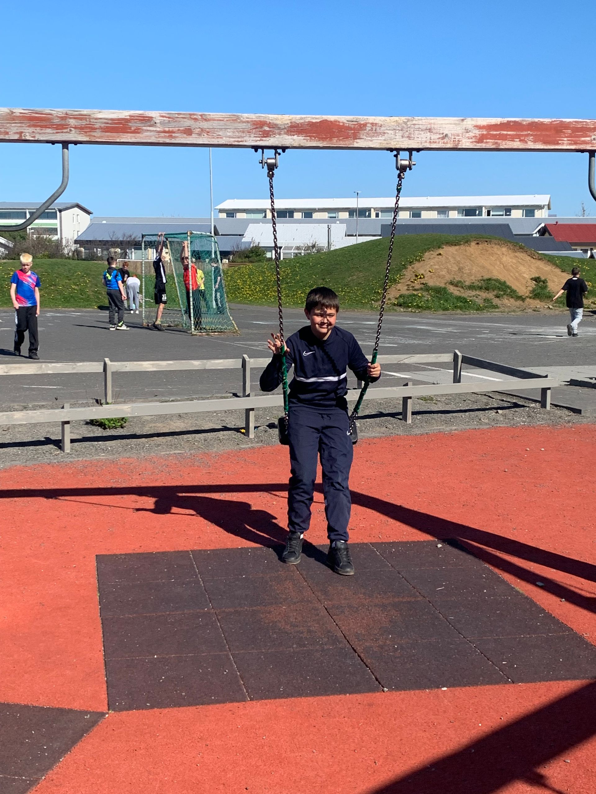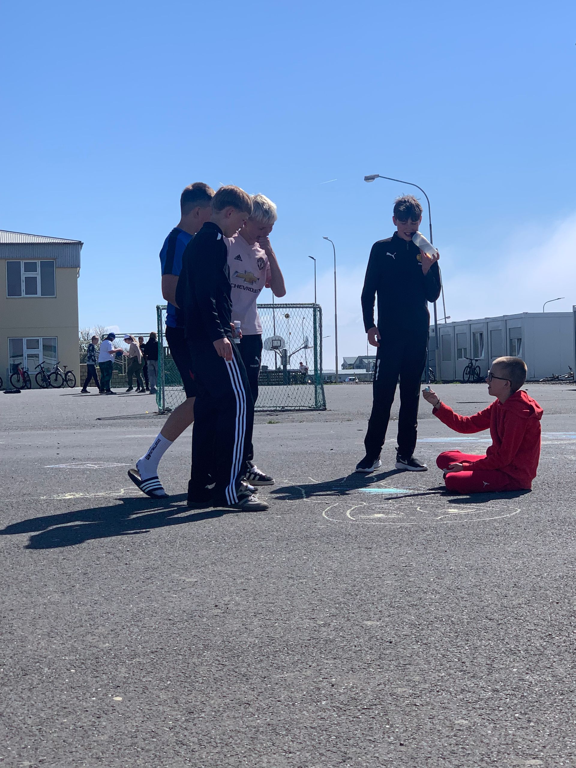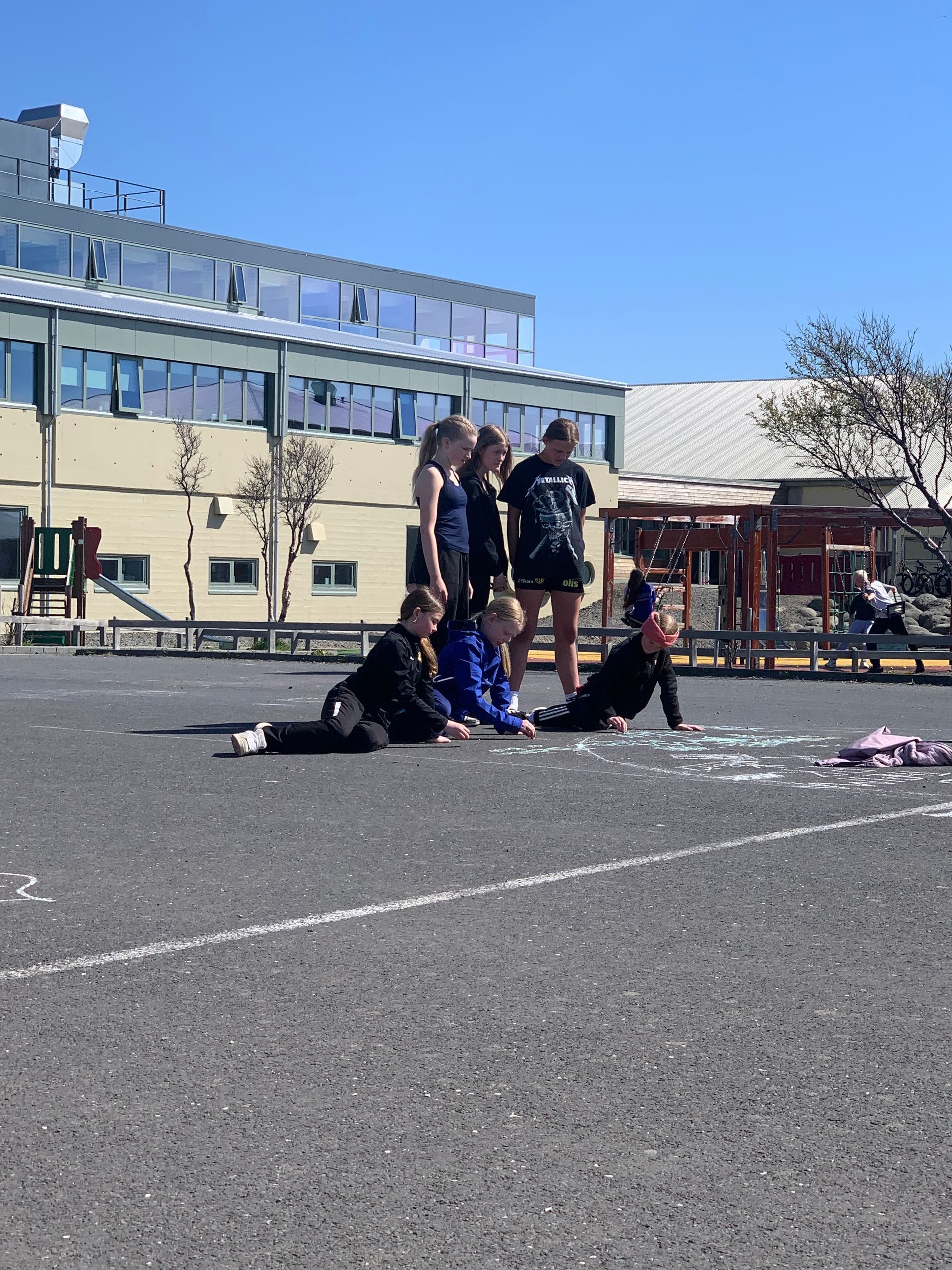 Hér má sjá 6. bekk njóta veðurblíðunnar og leika sér í alls konar leikjum.